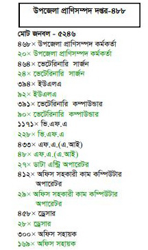 উপসহকারী প্রাণিসম্পদ কর্মকর্তা = ০৫ টি পদ (বর্তমানে ০৩ জন কর্মরত, ০২ টি পদ শূণ্য)